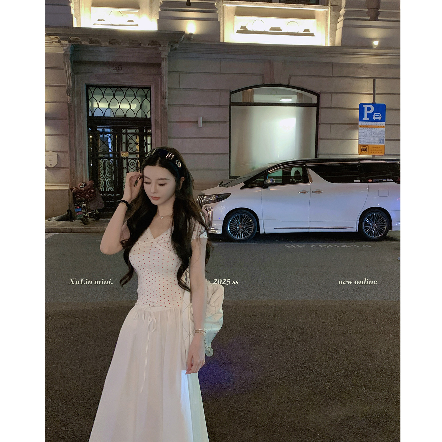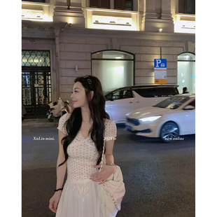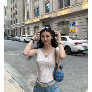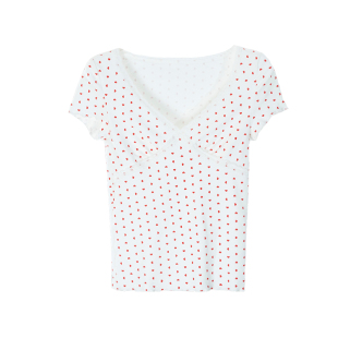 MINI STUDIO徐琳「纯爱T」芭蕾风优雅V领蕾丝拼接波点短上衣