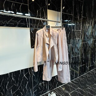 女装 2026年春秋新款 显白上衣阔腿裤 长袖 通勤显瘦ins风皮粉色套装