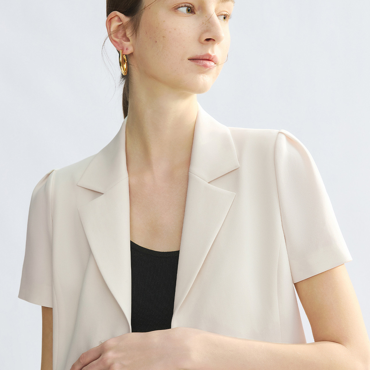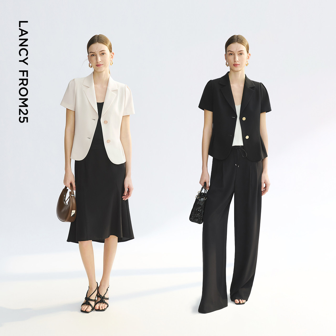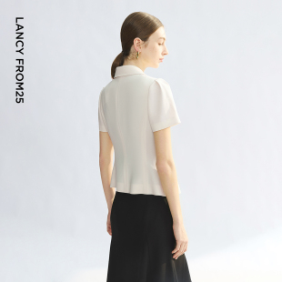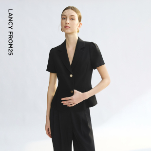 新款 外套黑白色ol通勤风西服女夏季 商务西装 朗姿25平驳领醋酸短袖