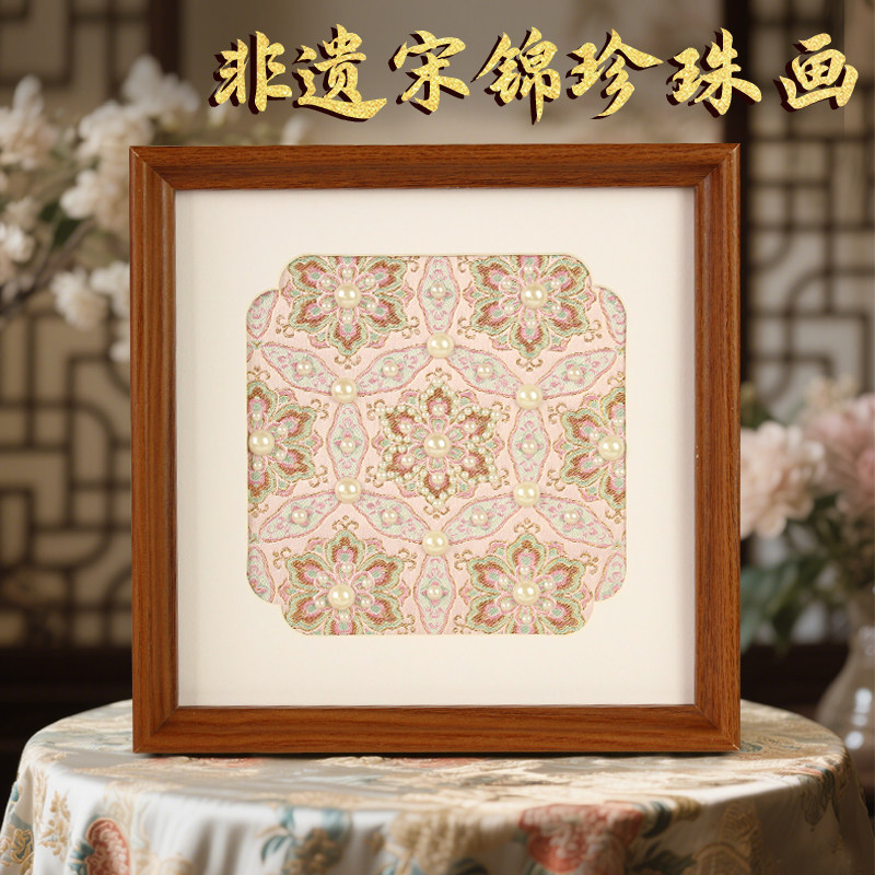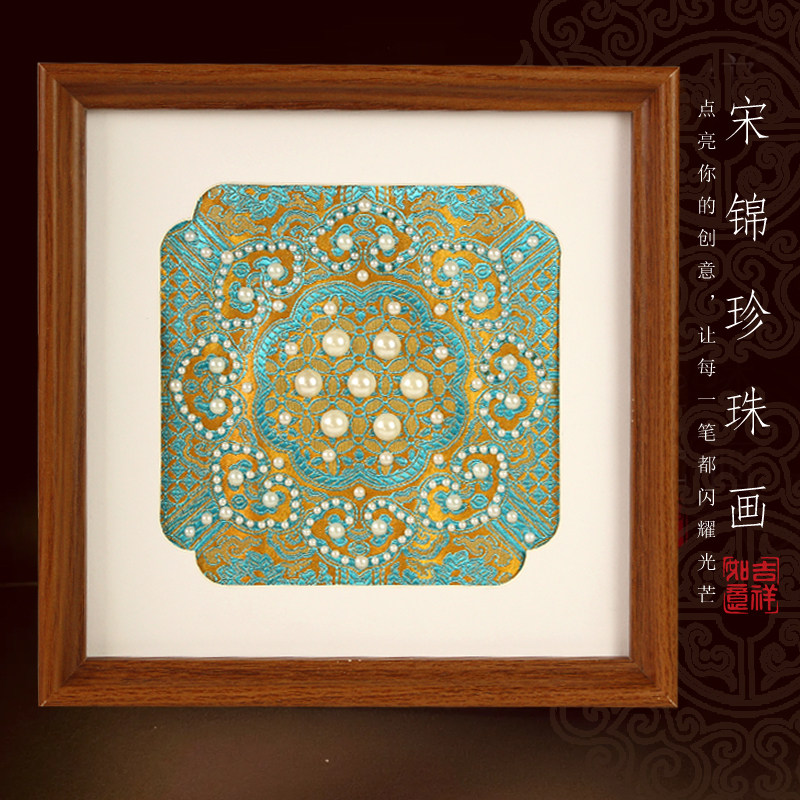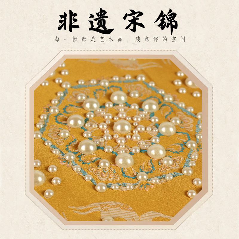 宋锦珍珠画手工拼贴diy材料包中国非遗相框新年马年沙龙暖场作品