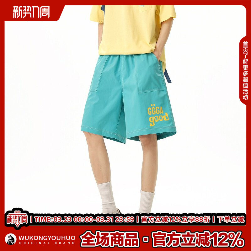男女潮牌情侣宽松百搭休闲短裤 悟空有货夏季 多巴胺速干运动五分裤