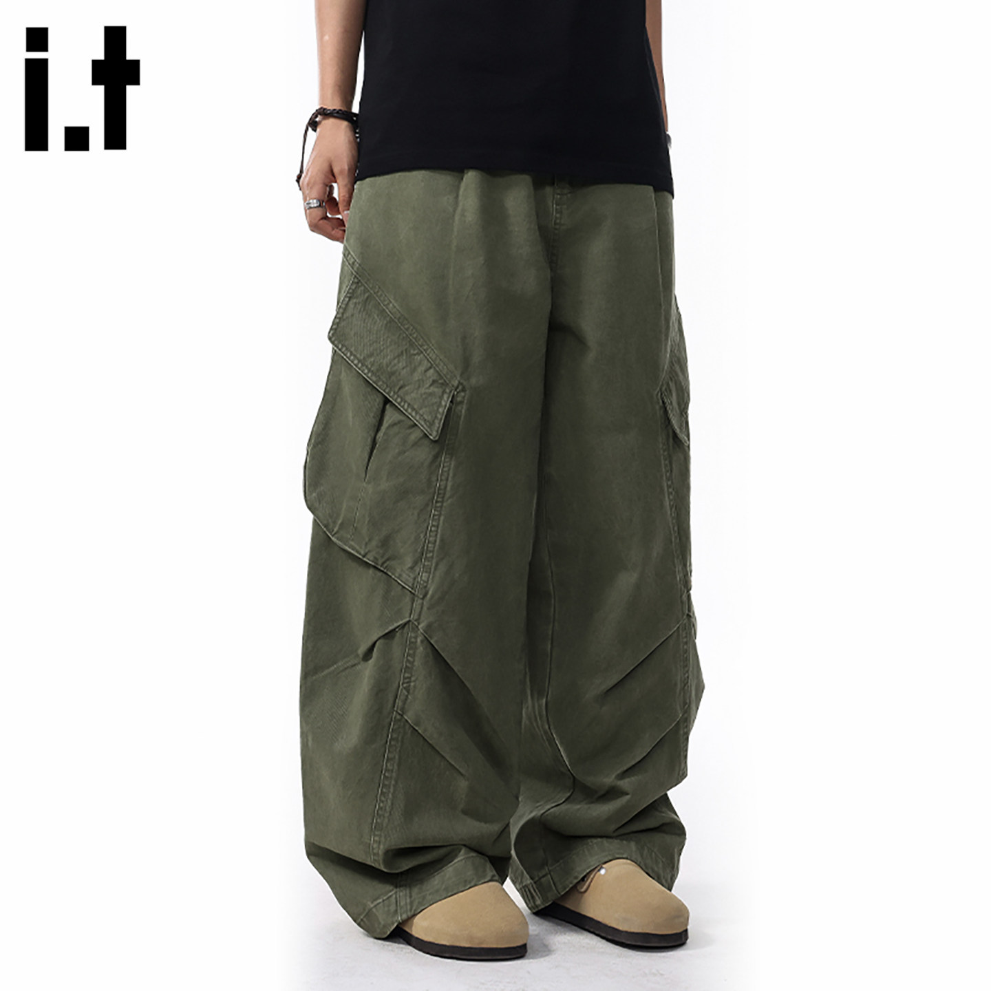 5cm 男女宽松复古褶皱休闲裤 FIVECM美式 裤 复古解构设计感工装