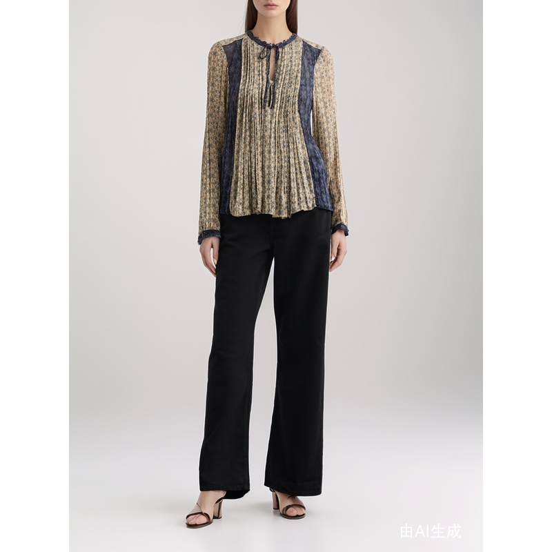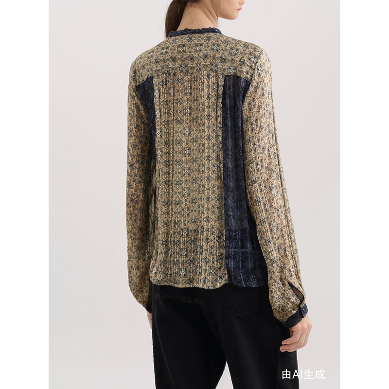 秋冬女花色金属感印花雪纺绸长袖 Rag&Bone 女衫 折扣