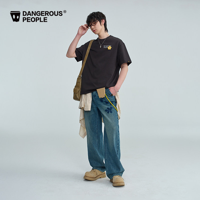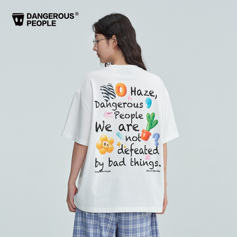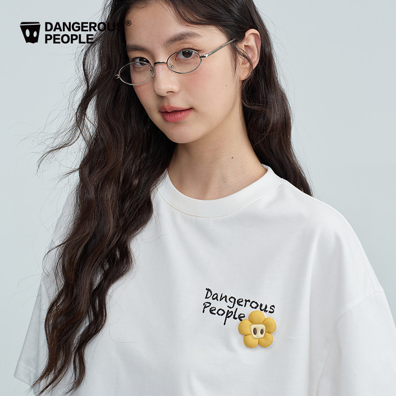 Dangerouspeople薛之谦dsp童趣魔术贴贴小花T恤潮牌涂鸦印花短袖