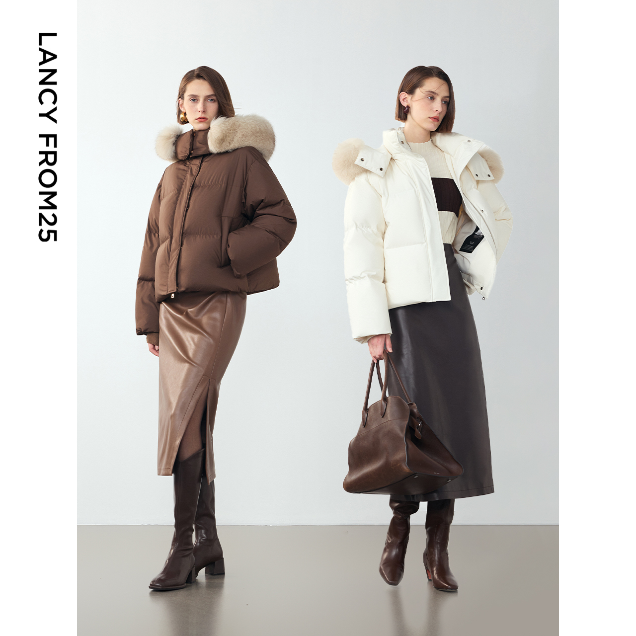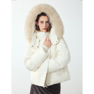 羽绒服 新款 朗姿狐狸毛领霍尔多巴吉白鹅绒短款 连帽外套女冬季