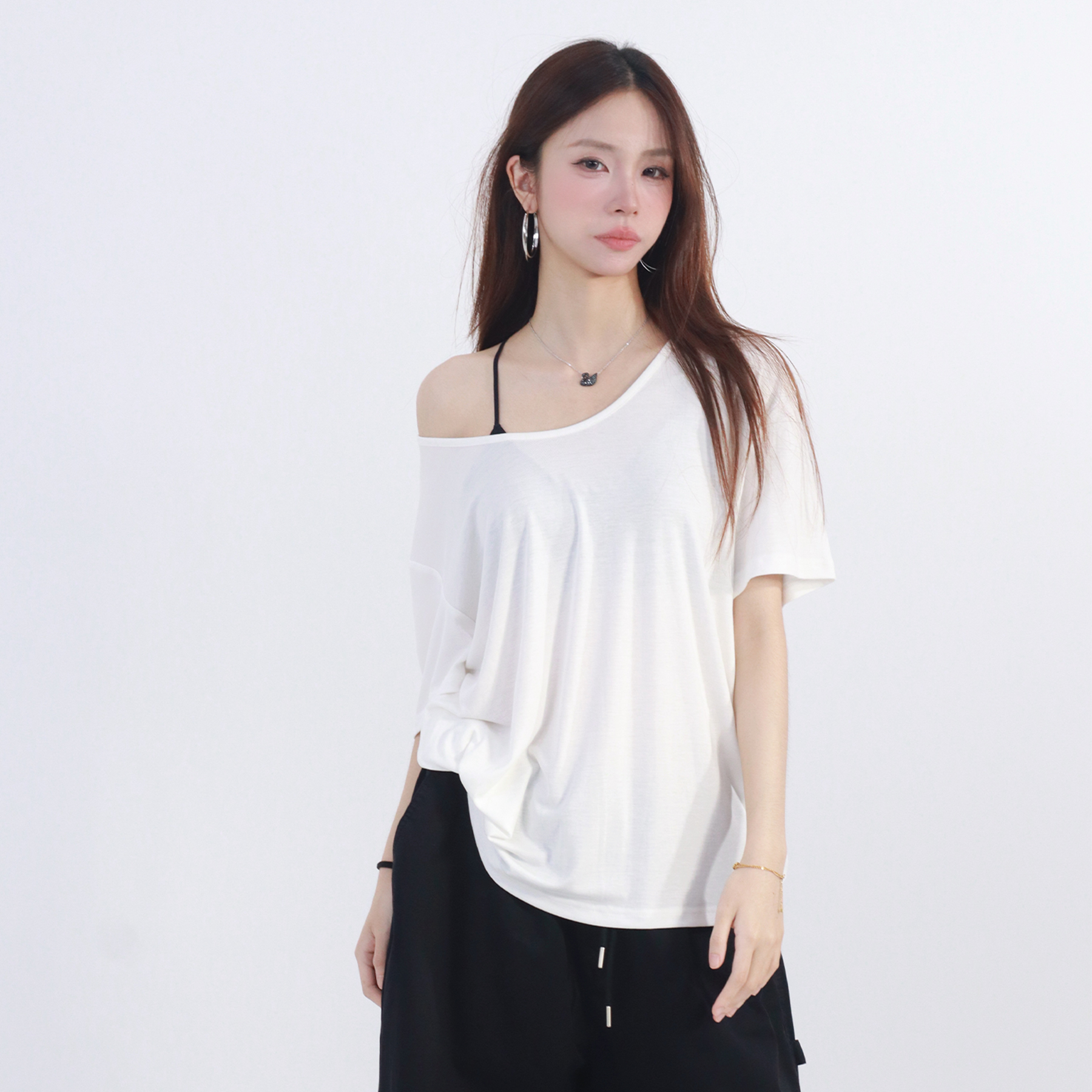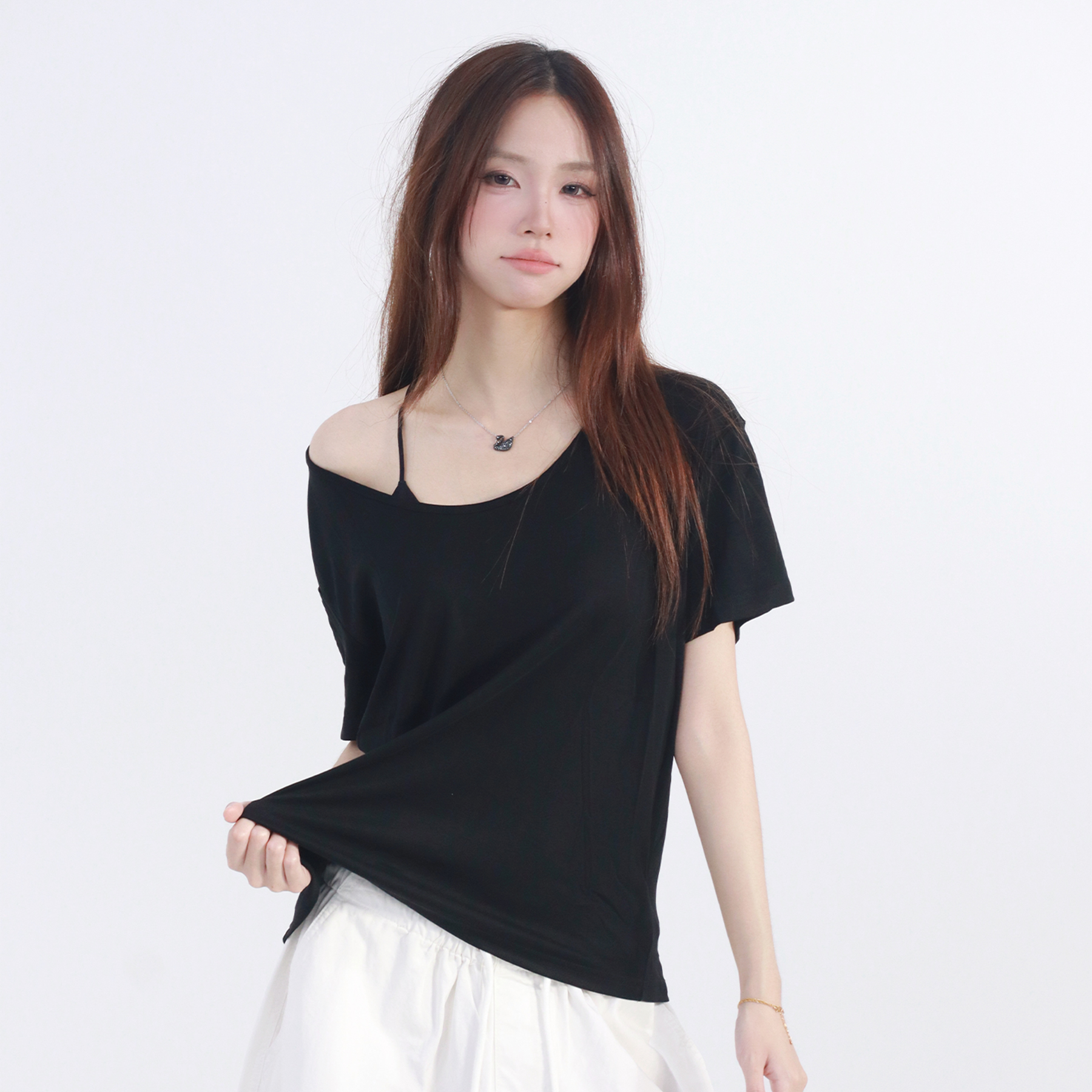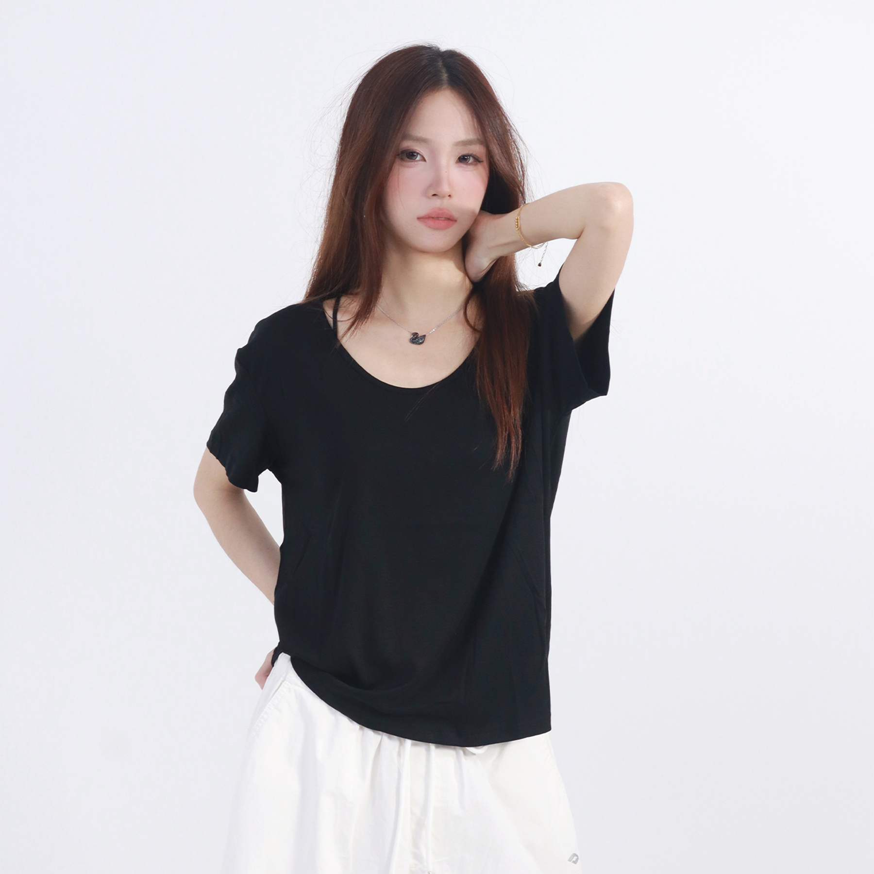 大佬街舞潮牌松弛感V领T恤弹力小众上衣凉感慵懒风编舞纯色夏7004