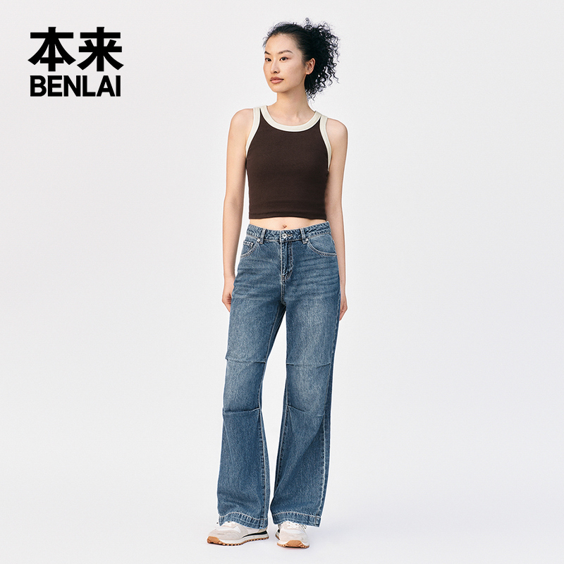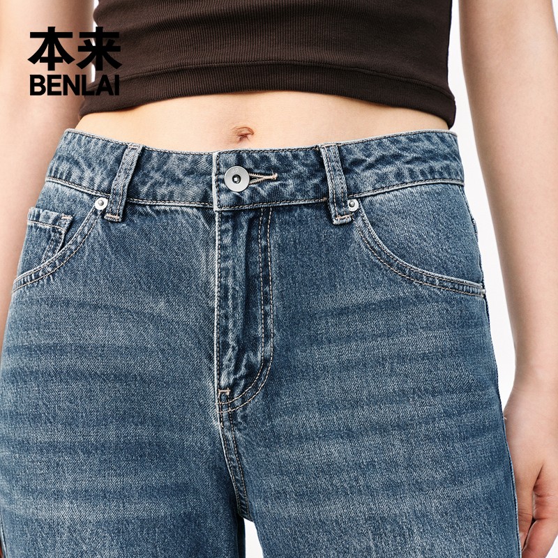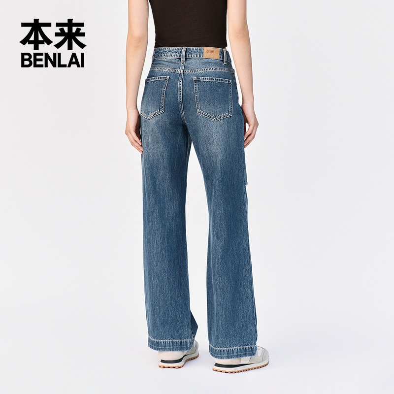 洗水宽松直筒阔腿长裤 新款 秋季 本来BENLAI女士全棉伞兵牛仔裤