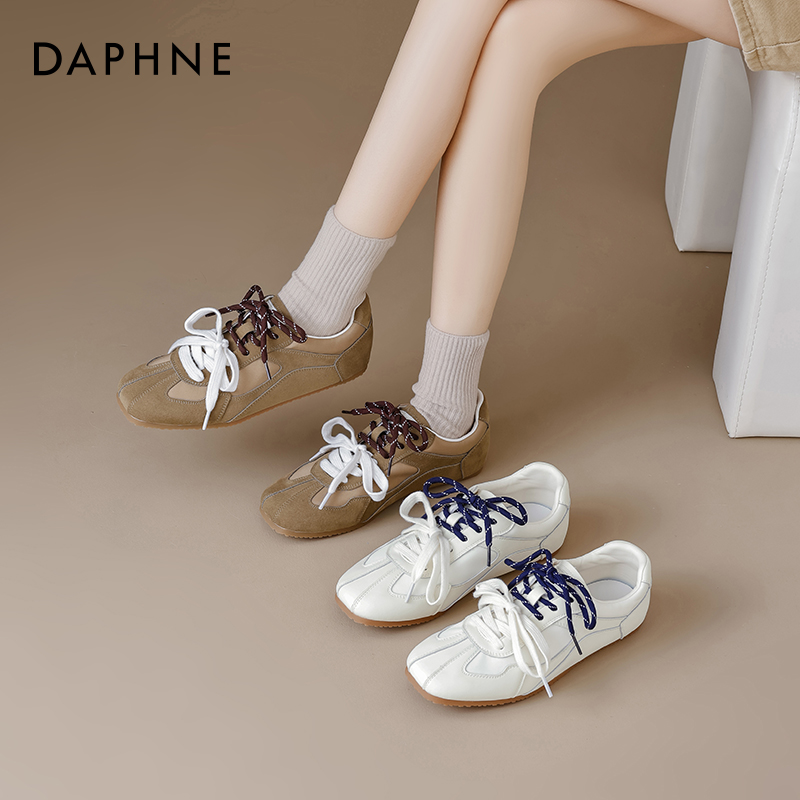子运动平底小白鞋 秋冬加绒薄底白色鞋 女2025新款 达芙妮芭蕾德训鞋