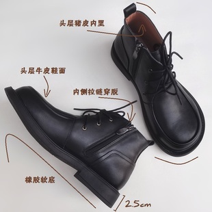 真皮厚底增高工装 高帮休闲白色板鞋 靴子 加绒棉鞋 森马马丁靴男冬季