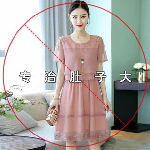 韩版 夏装 藏肉遮肚子雪纺连衣裙显瘦200斤裙子 女装 微胖妹妹大码
