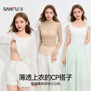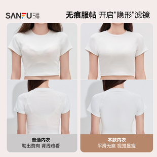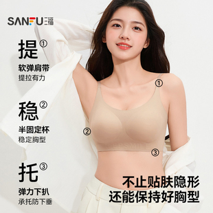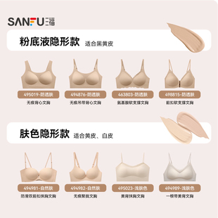 三福防透肤文胸女无痕隐形胸罩粉底液自然肤内衣 穿白T不尴尬