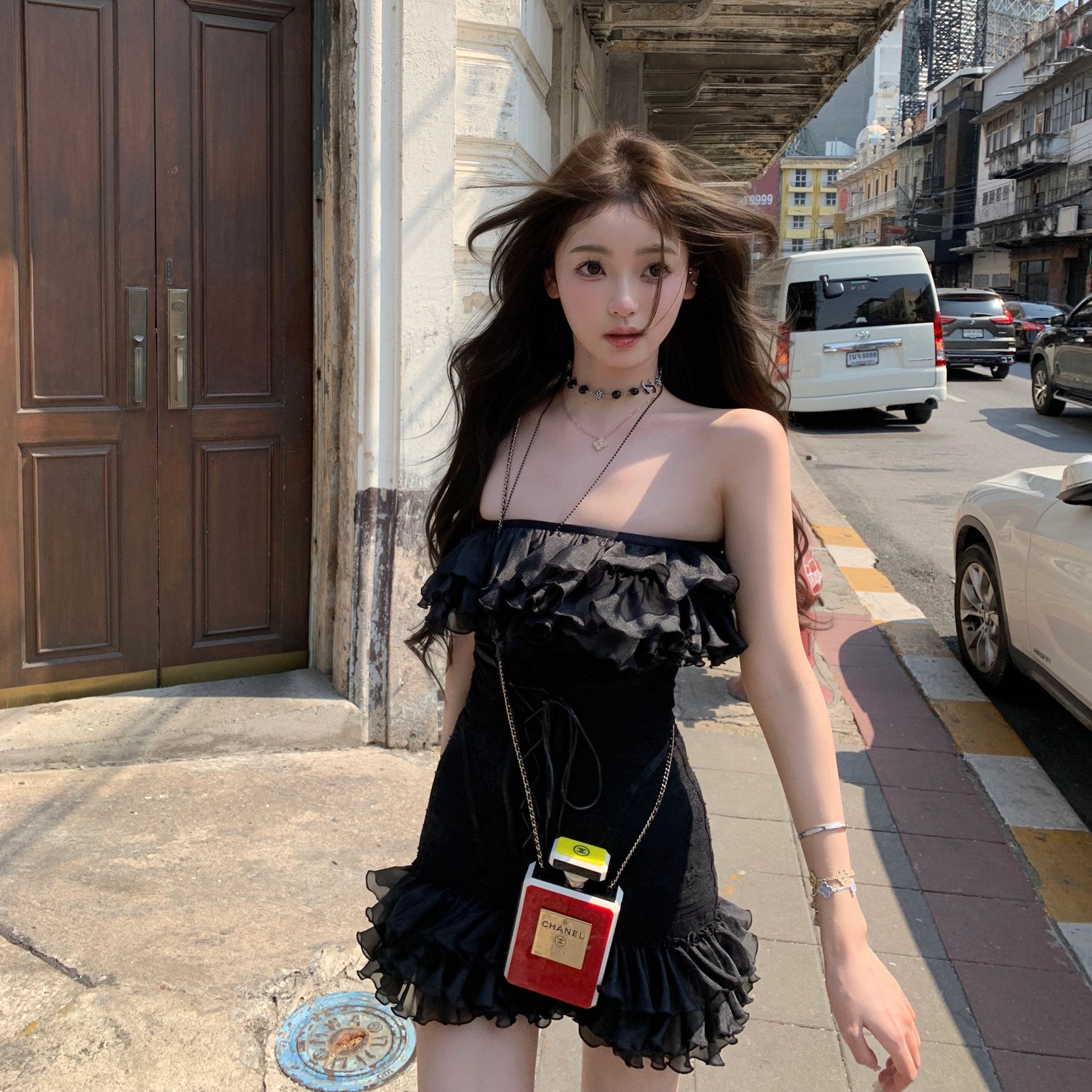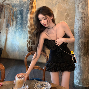 荷叶边蕾丝鱼骨绑带设计拼接网纱连衣裙 统治领域 你 懒懒llan