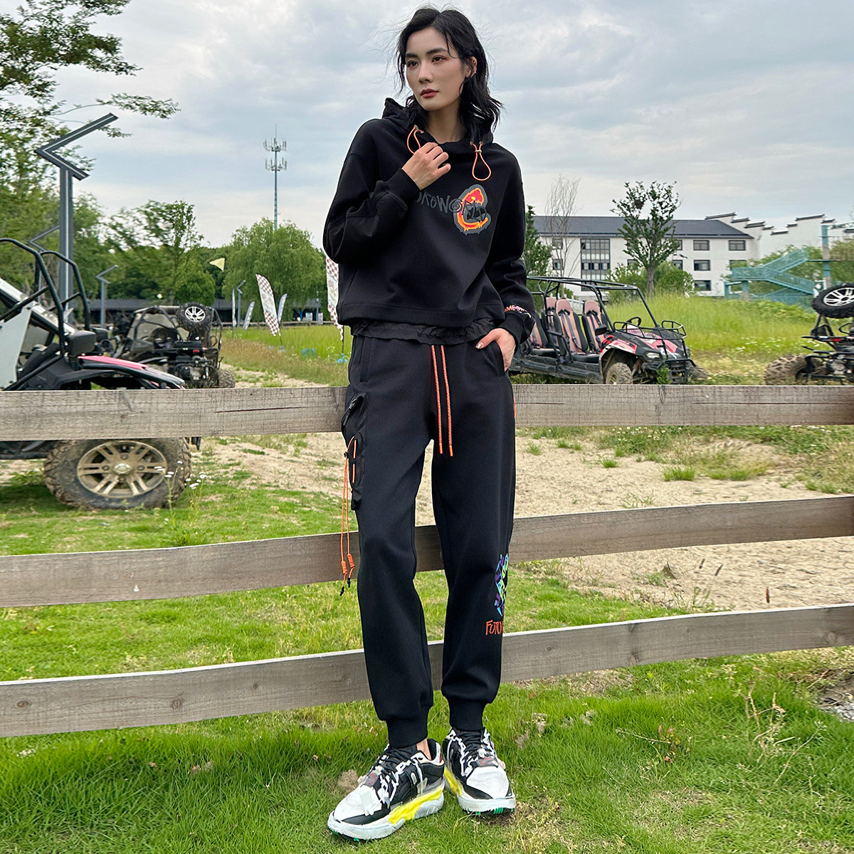 连帽抽绳拼接卫衣 春季 松紧工装 哈伦裤 006 西湖阁老 套装