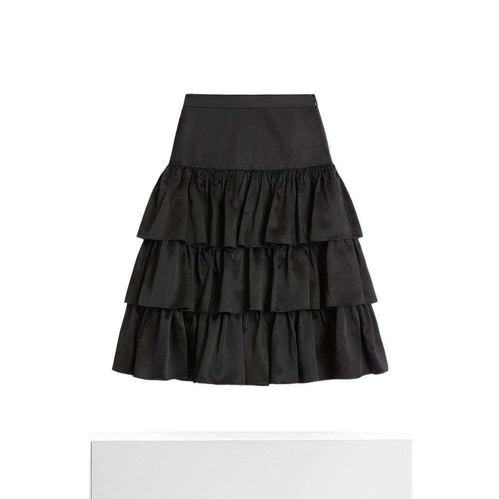 黑色 香港直邮VALENTINO SS2025 BRADB092G0NO 褶皱半 女士半身裙