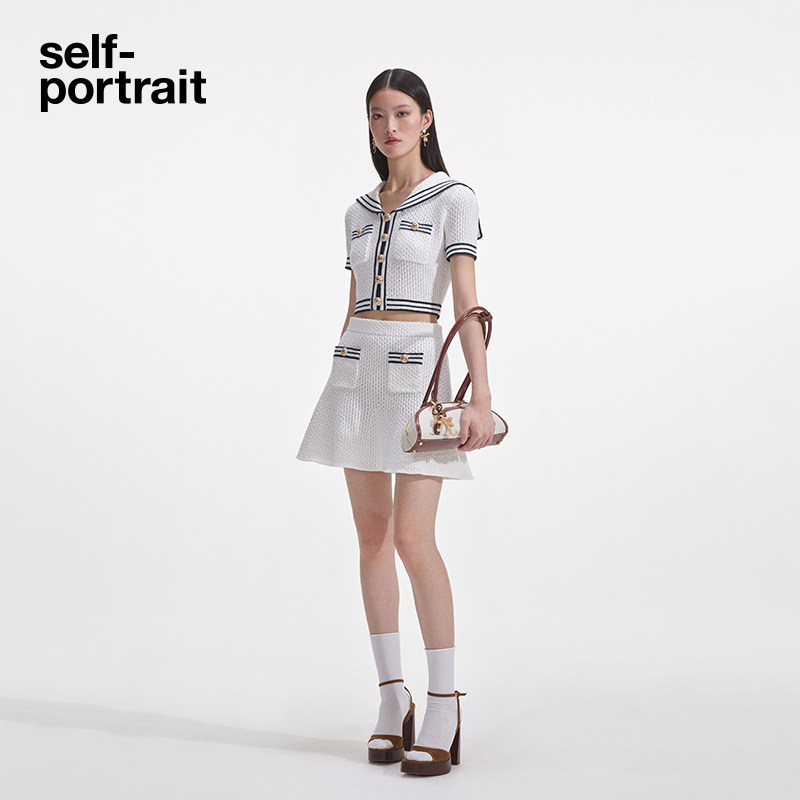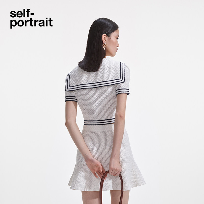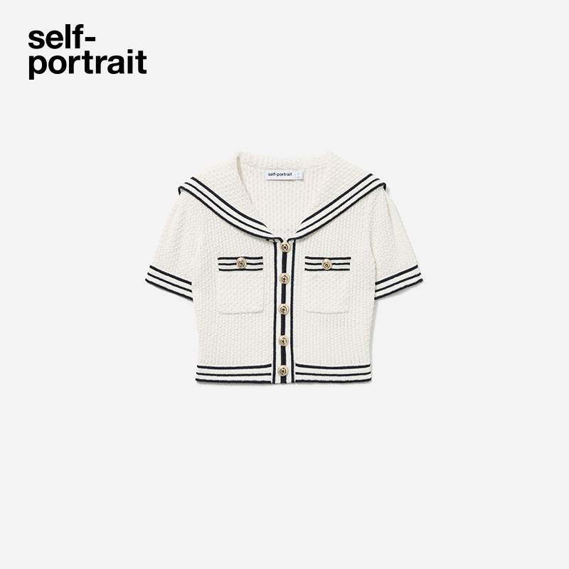 白混色海军领小香风航海短袖 2025春夏新款 针织上衣 portrait self