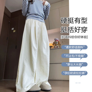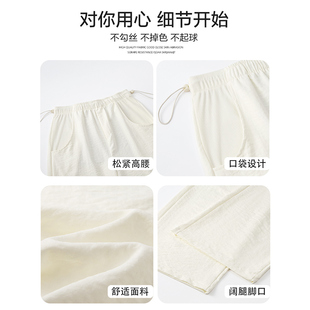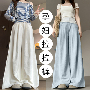 夏季 抽绳休闲阔腿裤 薄款 无托腹冰丝奶芙裤 外穿2025新款 浪莎孕妇裤