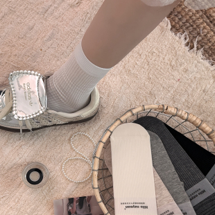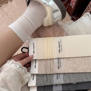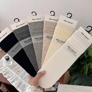 百搭中筒袜夏天长袜 纯棉透气基础款 灰色无骨堆堆袜子女春夏季 薄款