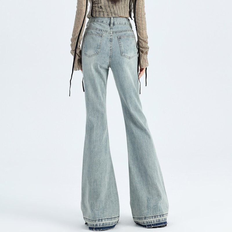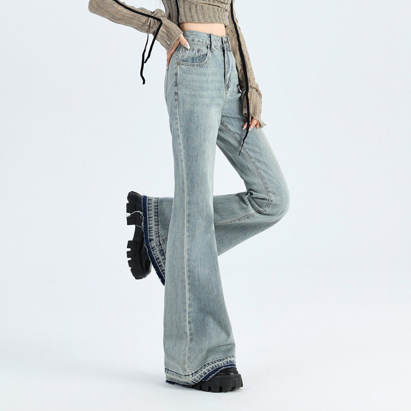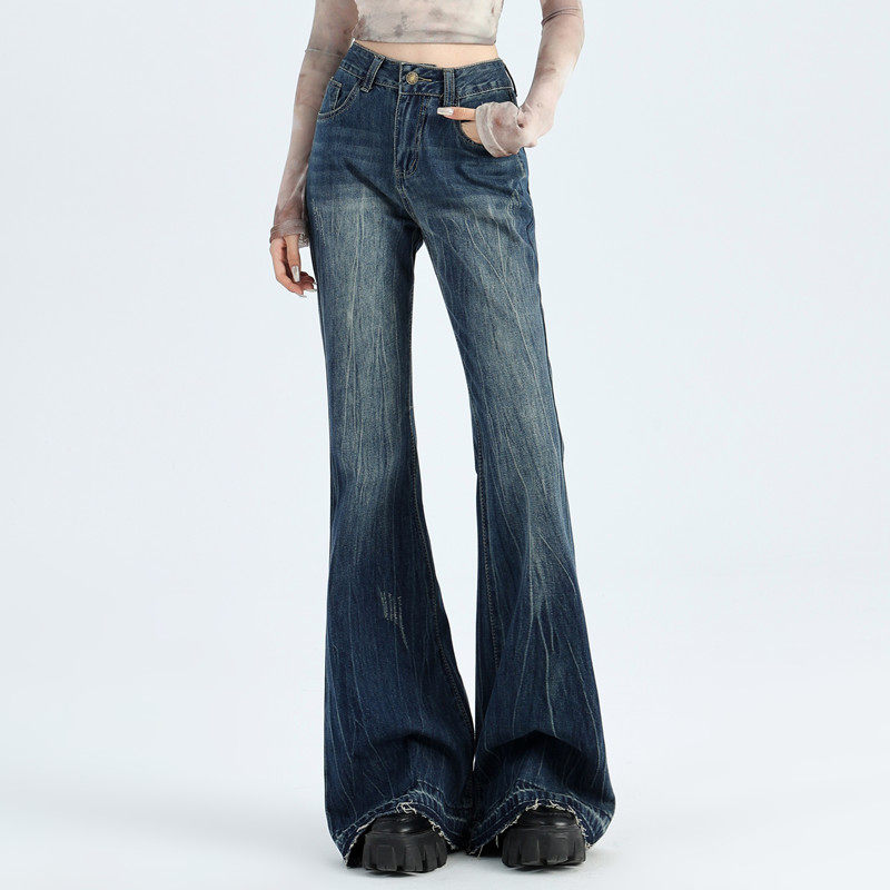 复古水洗宽松马蹄显瘦拖地裤 女2025春秋新款 子 高腰微喇牛仔裤 美式