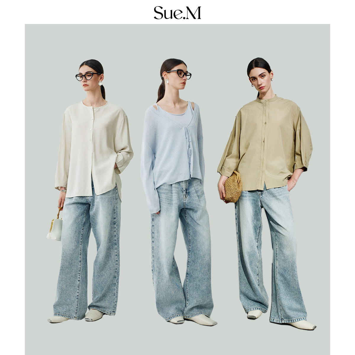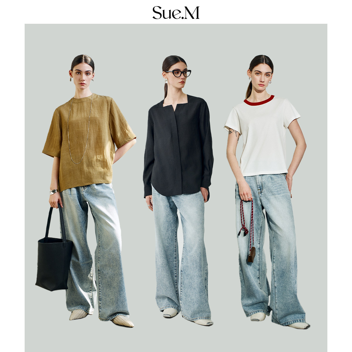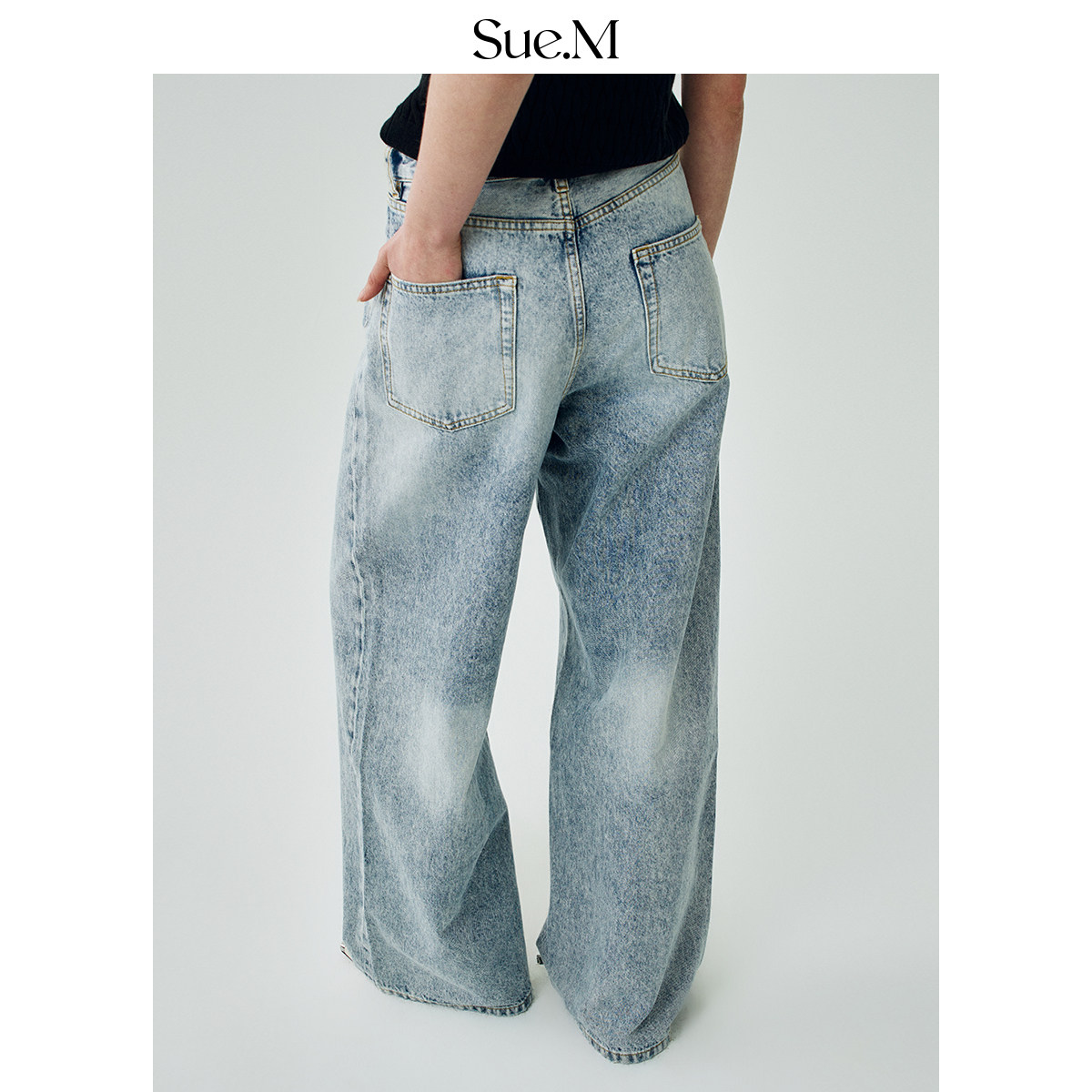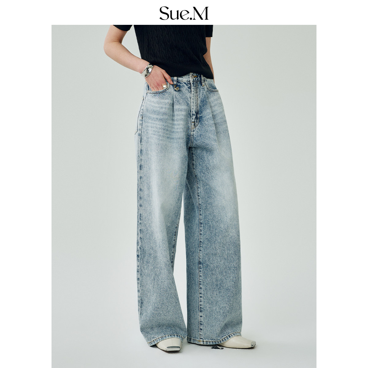 女士 女雅痞褶裥松弛感JU好穿阔腿显瘦牛仔直筒裤 Sue.M 天丝牛仔裤