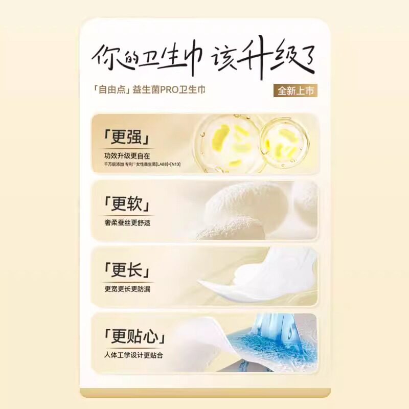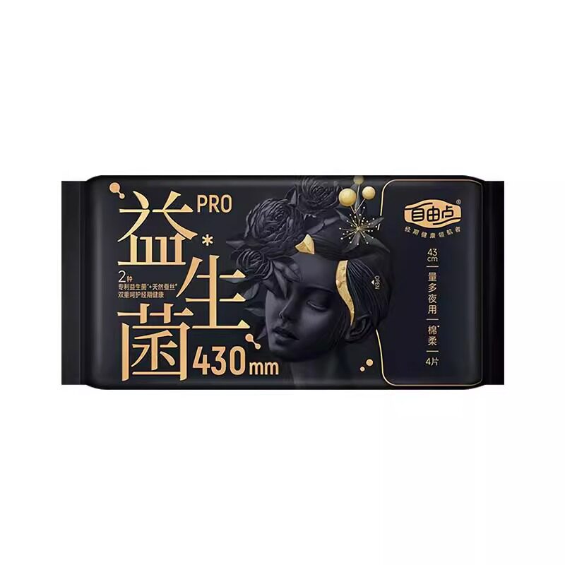 自由点卫生巾姨妈巾益生菌防漏超薄纯棉亲肤夜用430mm4片 包
