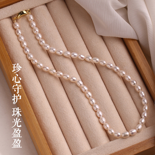 正品 小米珠型锁骨链轻奢小众送母亲女友礼物 天然淡水珍珠项链女款