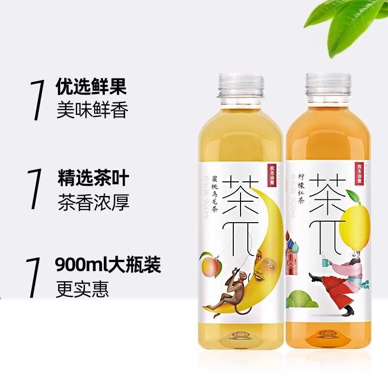 农夫山泉茶派茶兀900ml 500ml果汁茶大瓶饮料茉莉花蜜桃乌龙