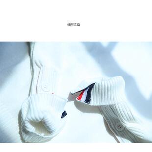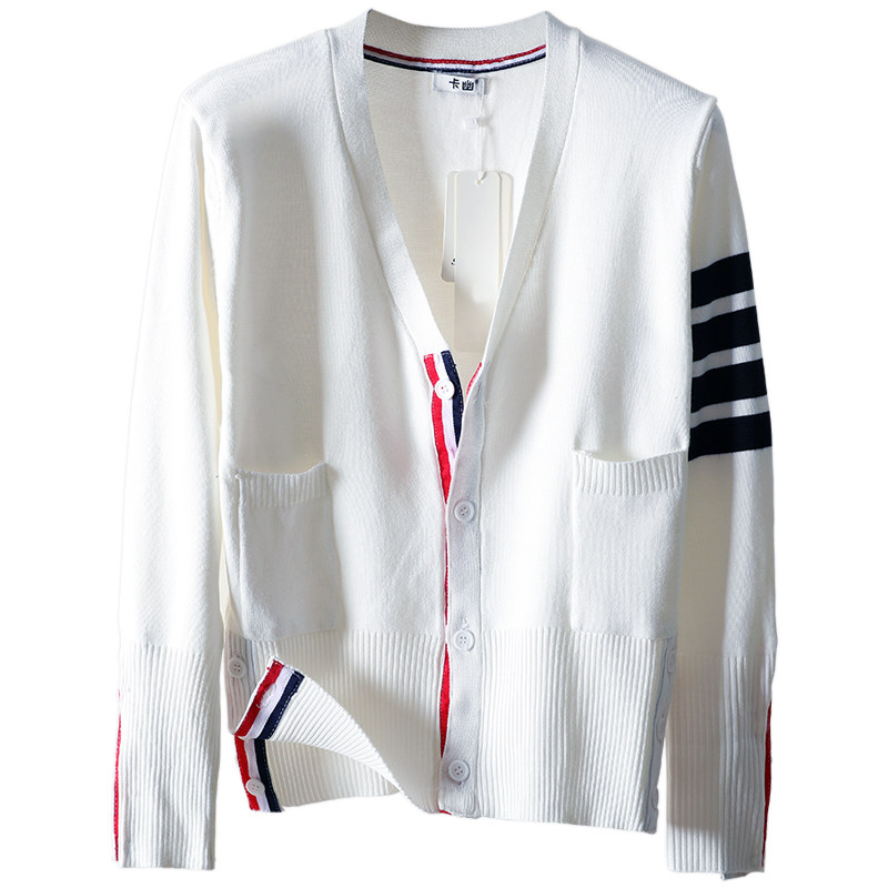 开衫 白色针织衫 女撞色四道杠条纹上衣短外套 新款 TB情侣春秋装