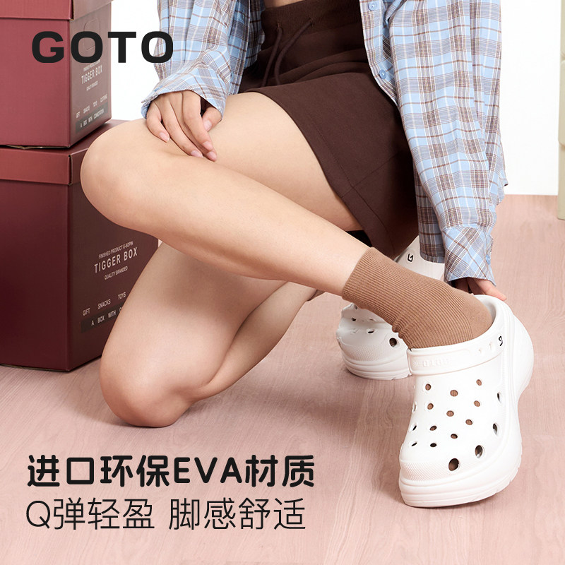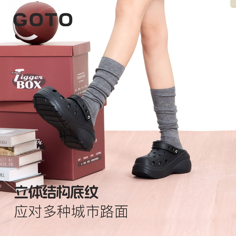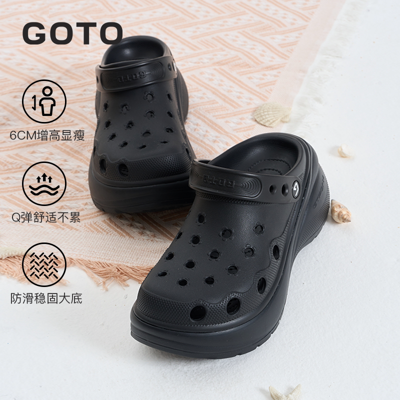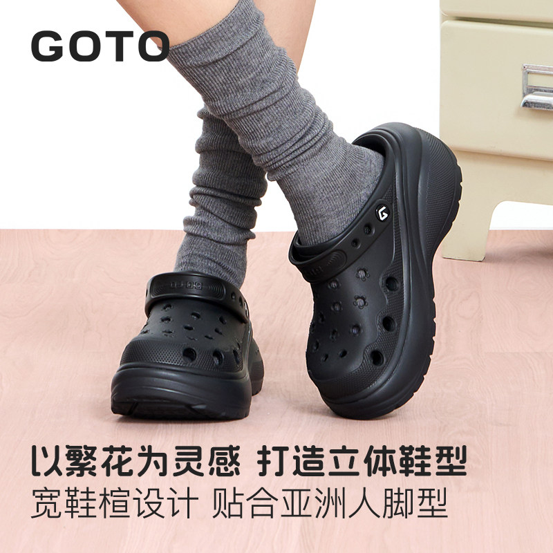 防滑防臭一脚蹬拖鞋 GOTO花朵洞洞鞋 外穿凉鞋 厚底增高沙滩鞋 女 女款