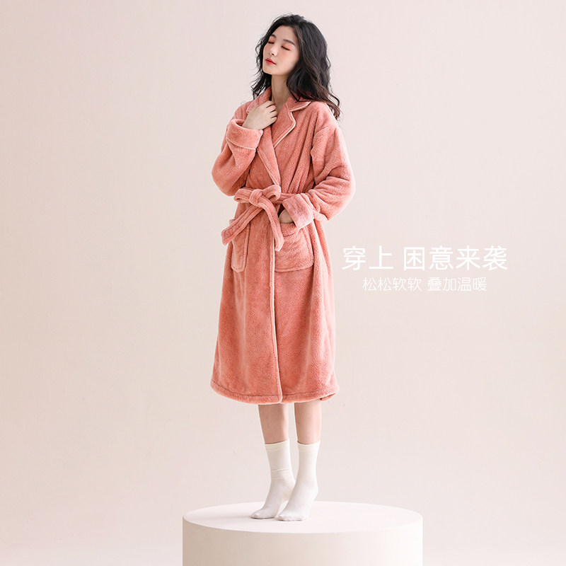 法兰绒加厚加绒珊瑚绒冬天 长款 家乐芬睡袍女士睡衣浴袍秋冬款 冬季