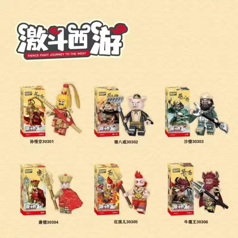 迪库西游记孙悟空齐天大圣牛魔王小侠人仔猪八戒唐僧积木拼装 玩具