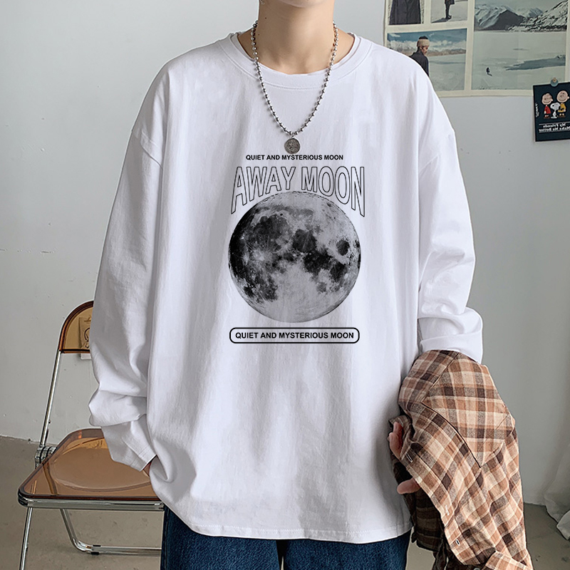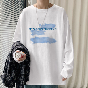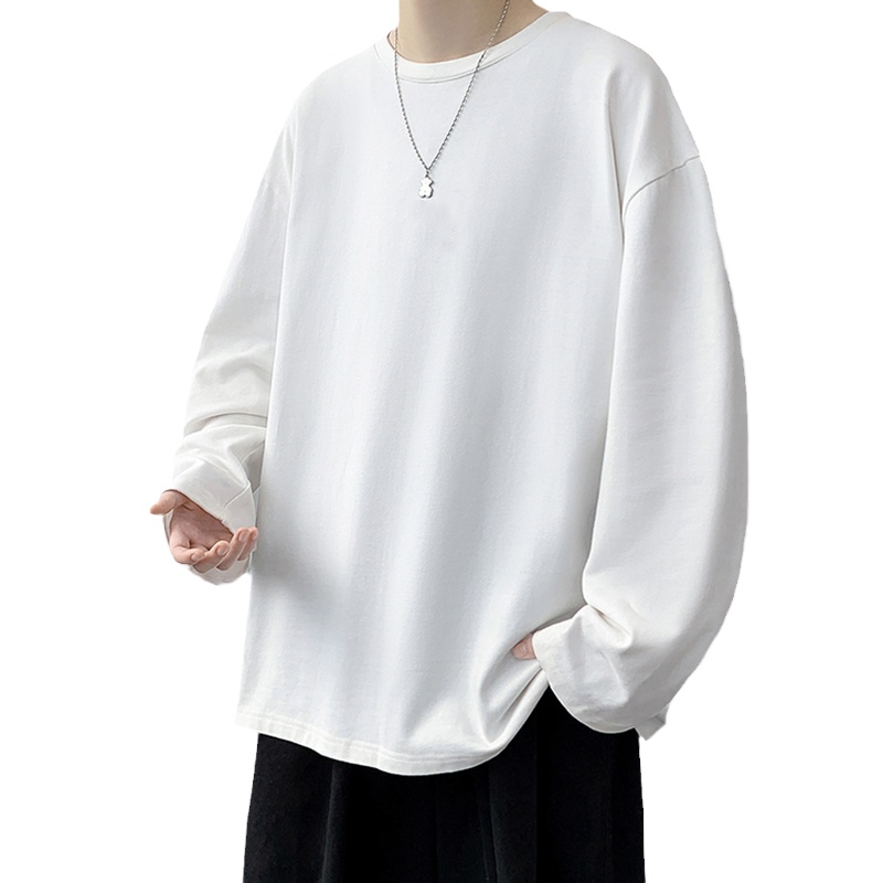 潮流圆领纯白体恤oversize青少年宽松打底衫 简约长袖 t恤男春秋季