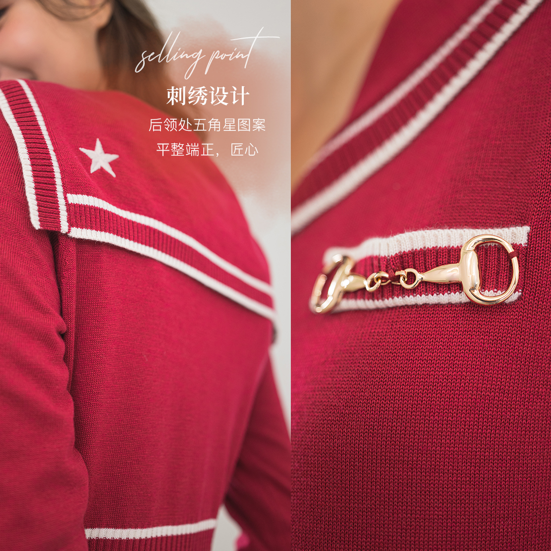 翻领海军风外出毛织哺乳裙 连衣裙时尚 BELLYWEAR孕妇春秋装 新款