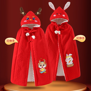 汉服披风女冬季 古风新娘秀禾结婚大氅斗篷加厚加绒红色披肩 长款