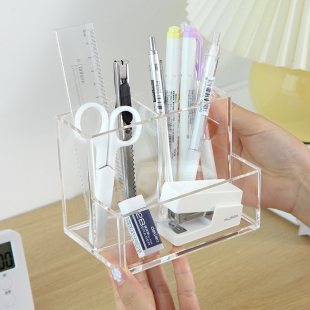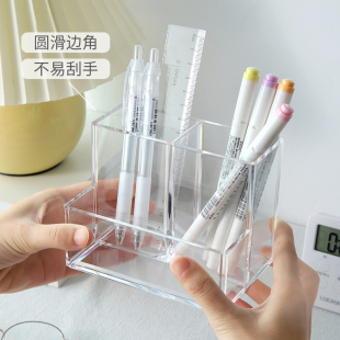 笔筒收纳盒简约风格 办公室桌面多功能文具透明亚克力学生桌面桶