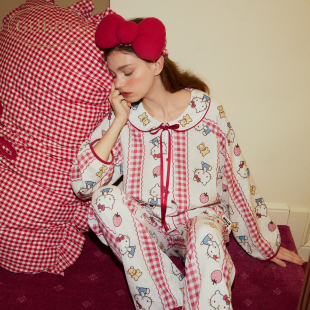 纯棉女士家居服套装 HelloKitty联名新款 果壳睡衣女春秋款 Gukoo