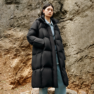 艾莱依2025秋冬新款 大被子羽绒服立体连帽设计加厚高充绒外套 长款