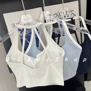 深圳南油高端女装 辣妹撞色美背运动背心女瑜伽健身吊带 带胸垫美式