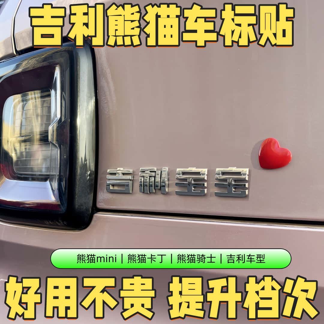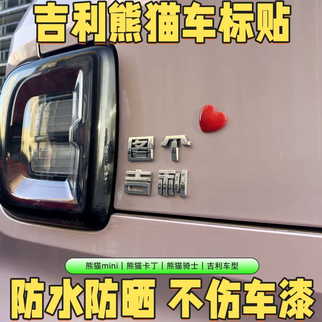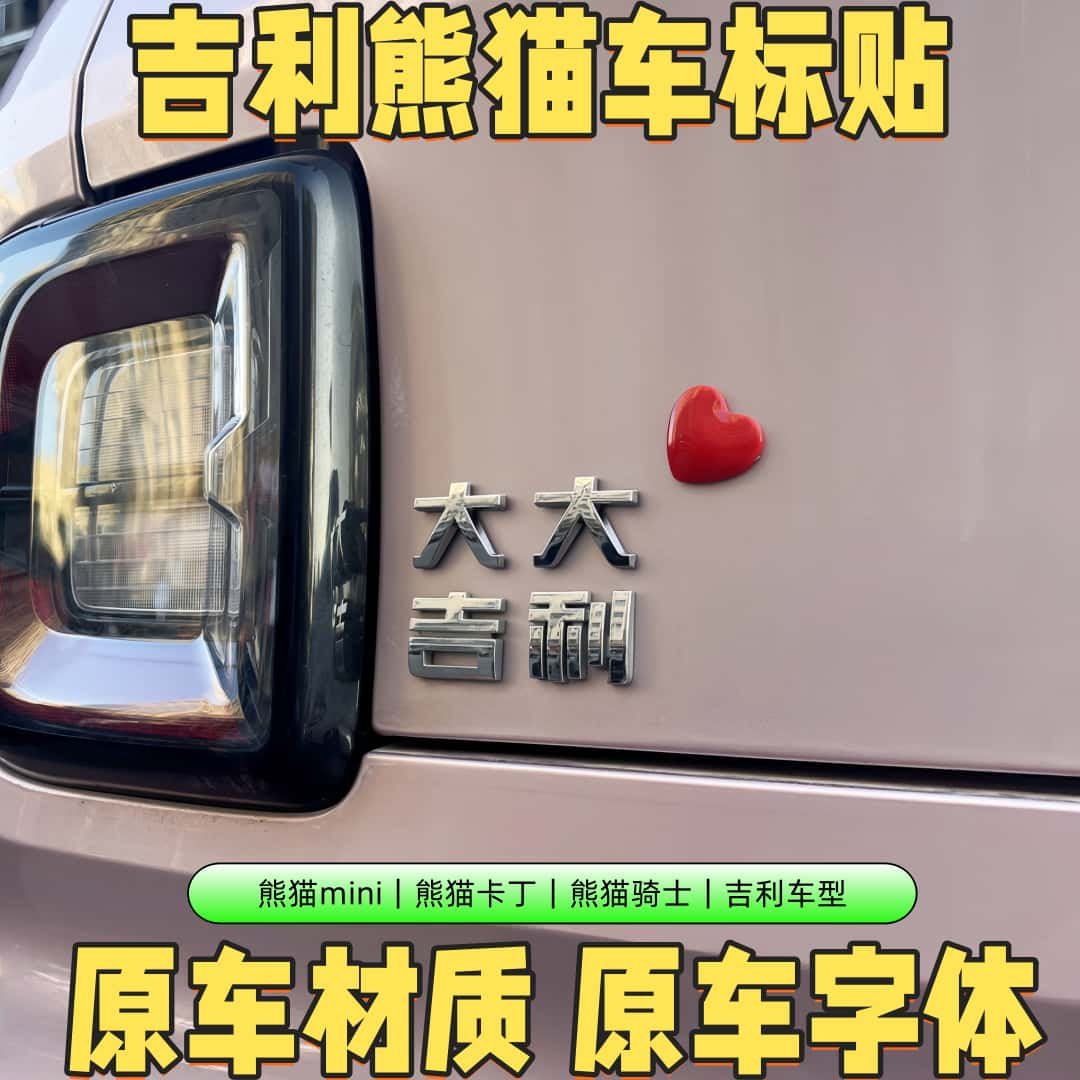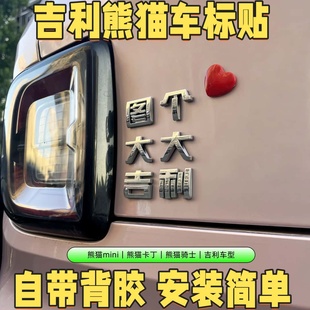 吉利熊猫车标贴mini卡丁骑士立体原车字大大图个搞笑个性 创意新款