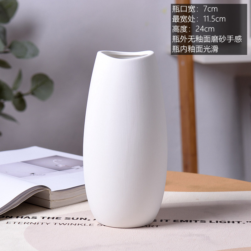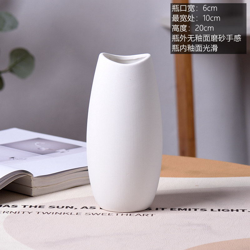 现代创意北欧素烧陶瓷白色轻奢花瓶客厅柜子简约摆件插花装 饰品