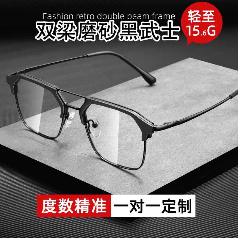 黑武士双梁飞行员近视眼镜框男款 可配度数变色眼睛大脸防雾近视镜