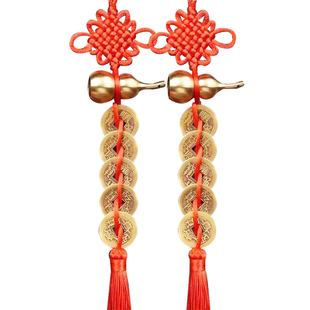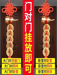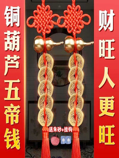 五帝钱门对门黄铜铜钱入户门压门槛大门卧室门摆件吉祥结葫芦挂件