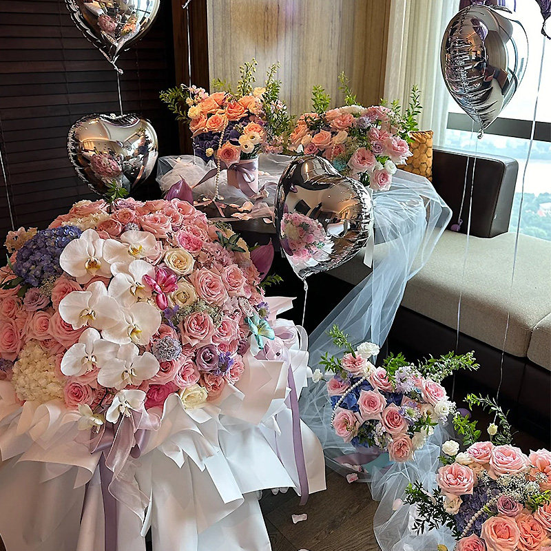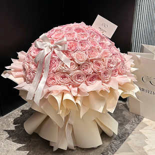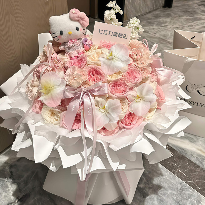 鲜花花束速递同城99朵粉玫瑰花多巴胺鲜花束Hellokitty猫生日配送