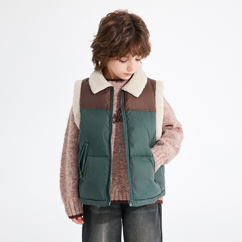 JEEP吉普羊羔绒羽绒马甲男款 保暖背心加绒加厚外套 坎肩棉马夹冬季