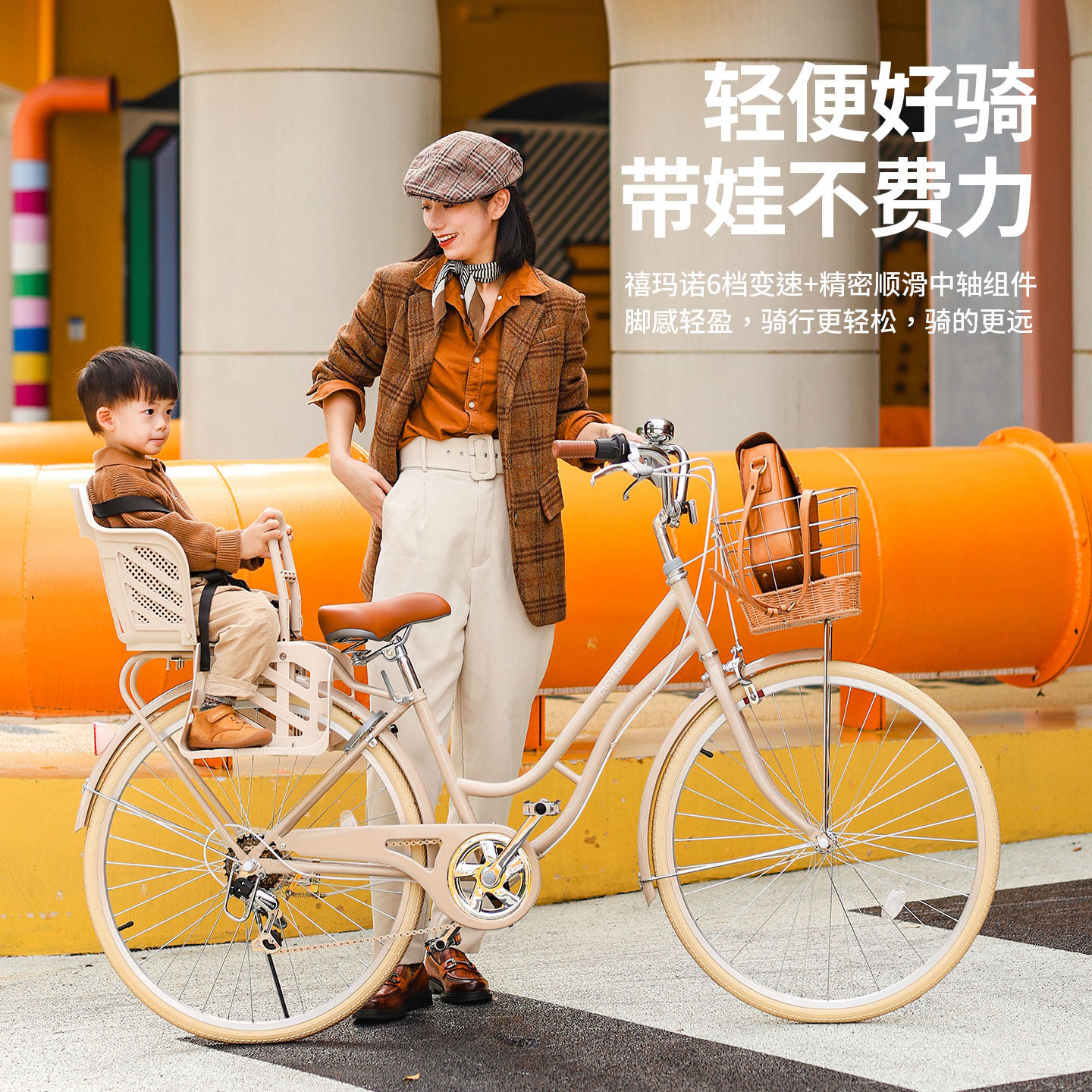 纽斯加亲子自行车母子车单车成人骑双人子母可载带儿童三人座椅