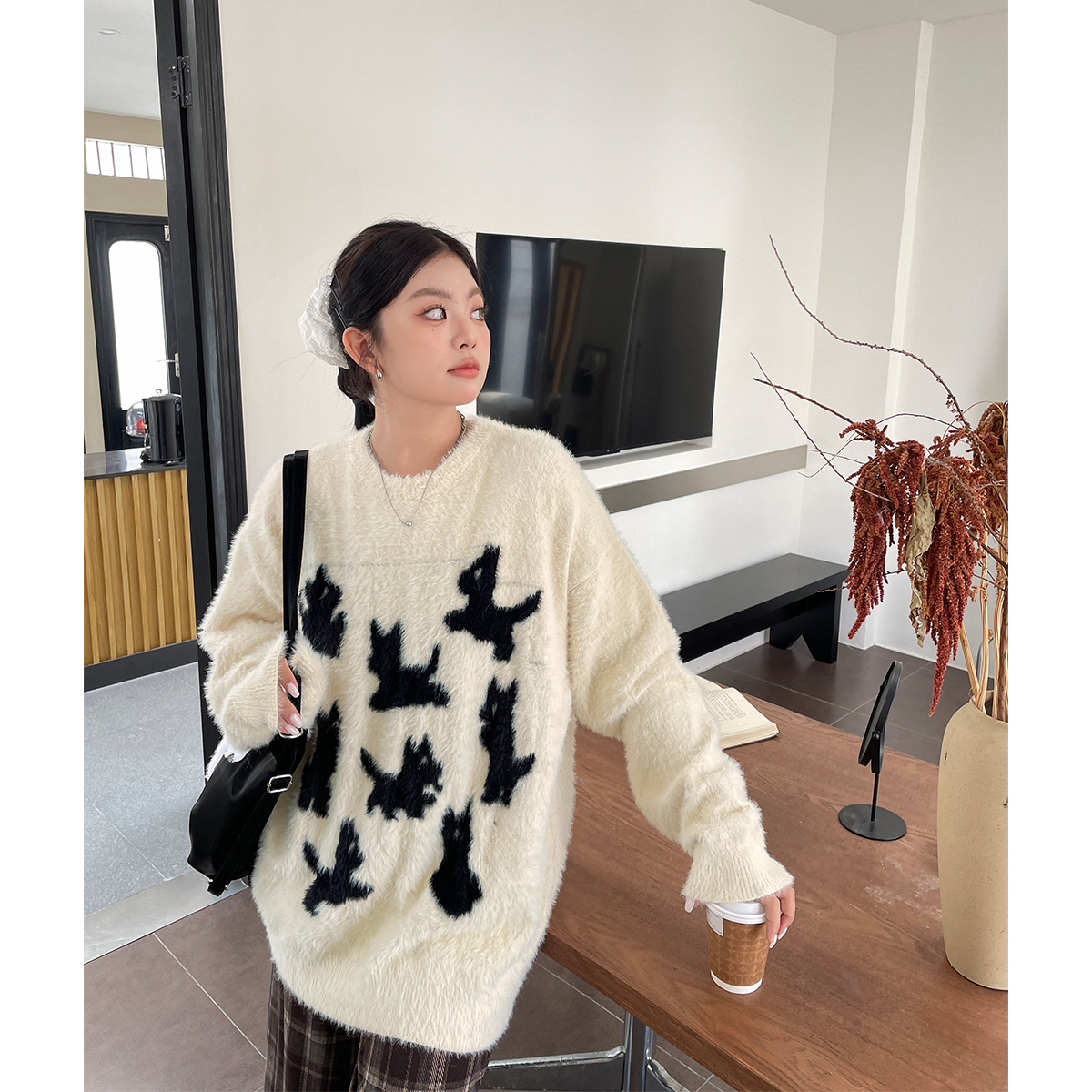 胖mm巨可爱显瘦上衣韩版 大码 秋冬款 2024新款 奶呼呼软糯毛衣 女装
