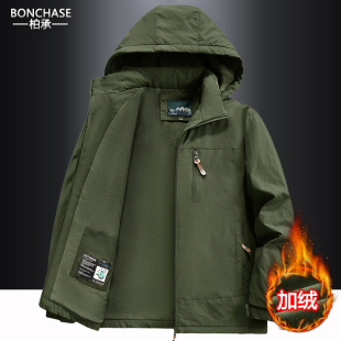 中老年冲锋衣秋冬户外男加绒爸爸保暖可拆帽棉衣外套大码 上衣 男装