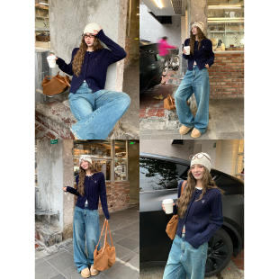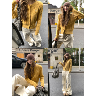 毛衣女秋冬修身 麻花短款 显瘦圆领上衣小外套 红色针织开衫 辰米范
