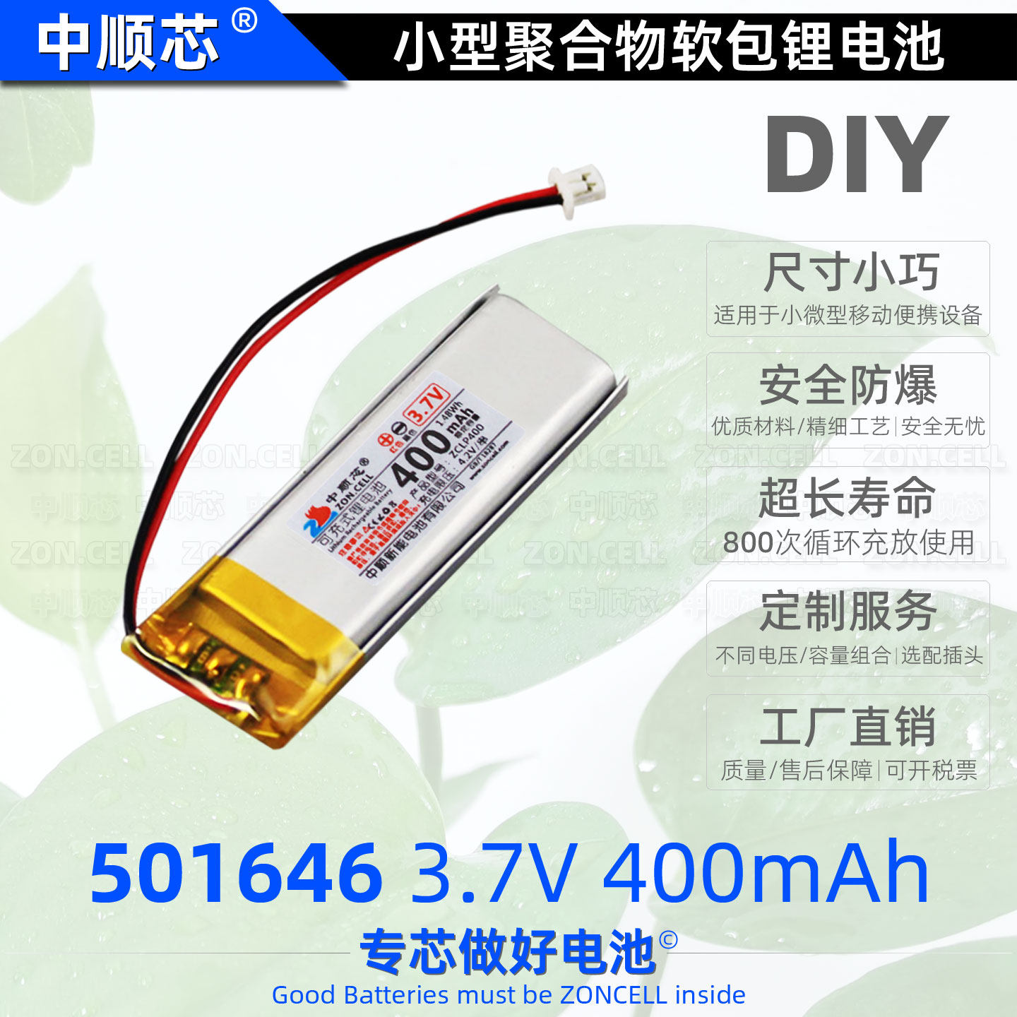 中顺芯501646录音点读商务笔蓝牙智能仪器纯钴聚合物锂电池3.7V