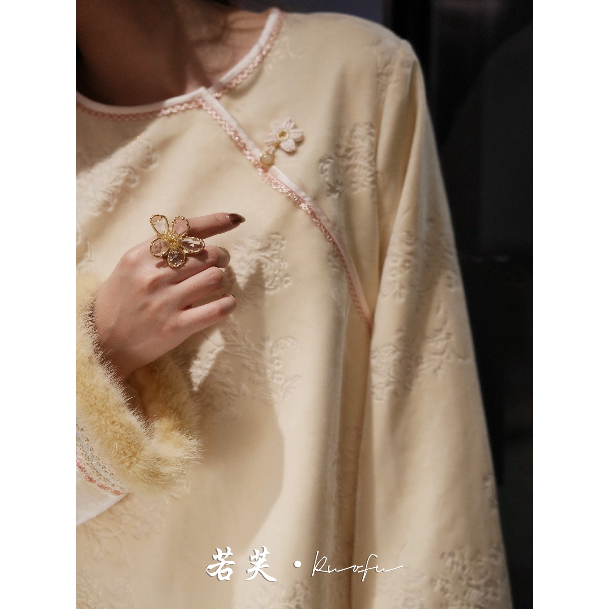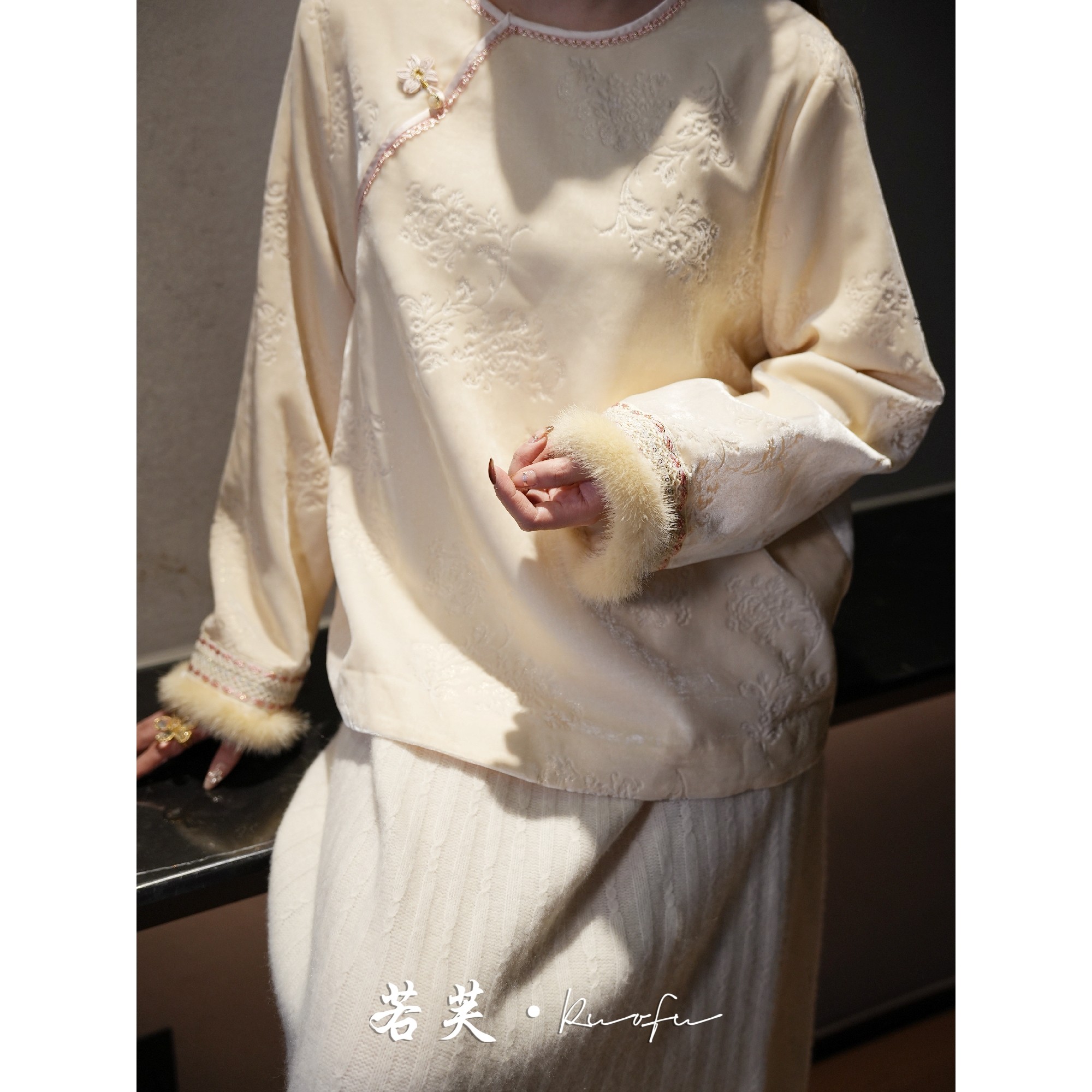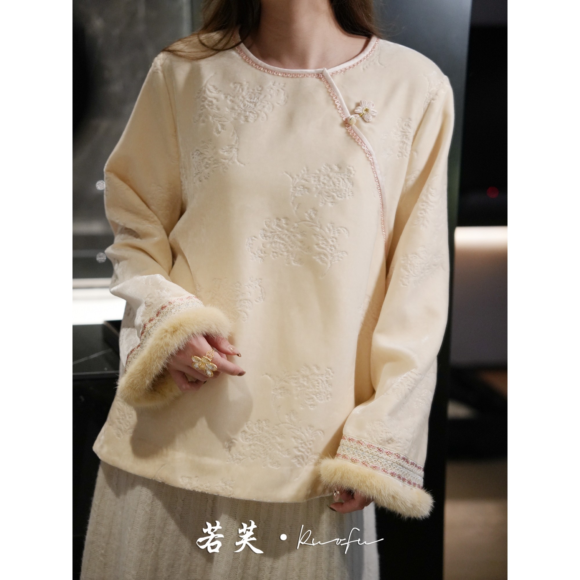 修身 原创温婉优雅纯欲刺绣重工蕾丝v领长袖 上衣 芷若芳心 杜总家