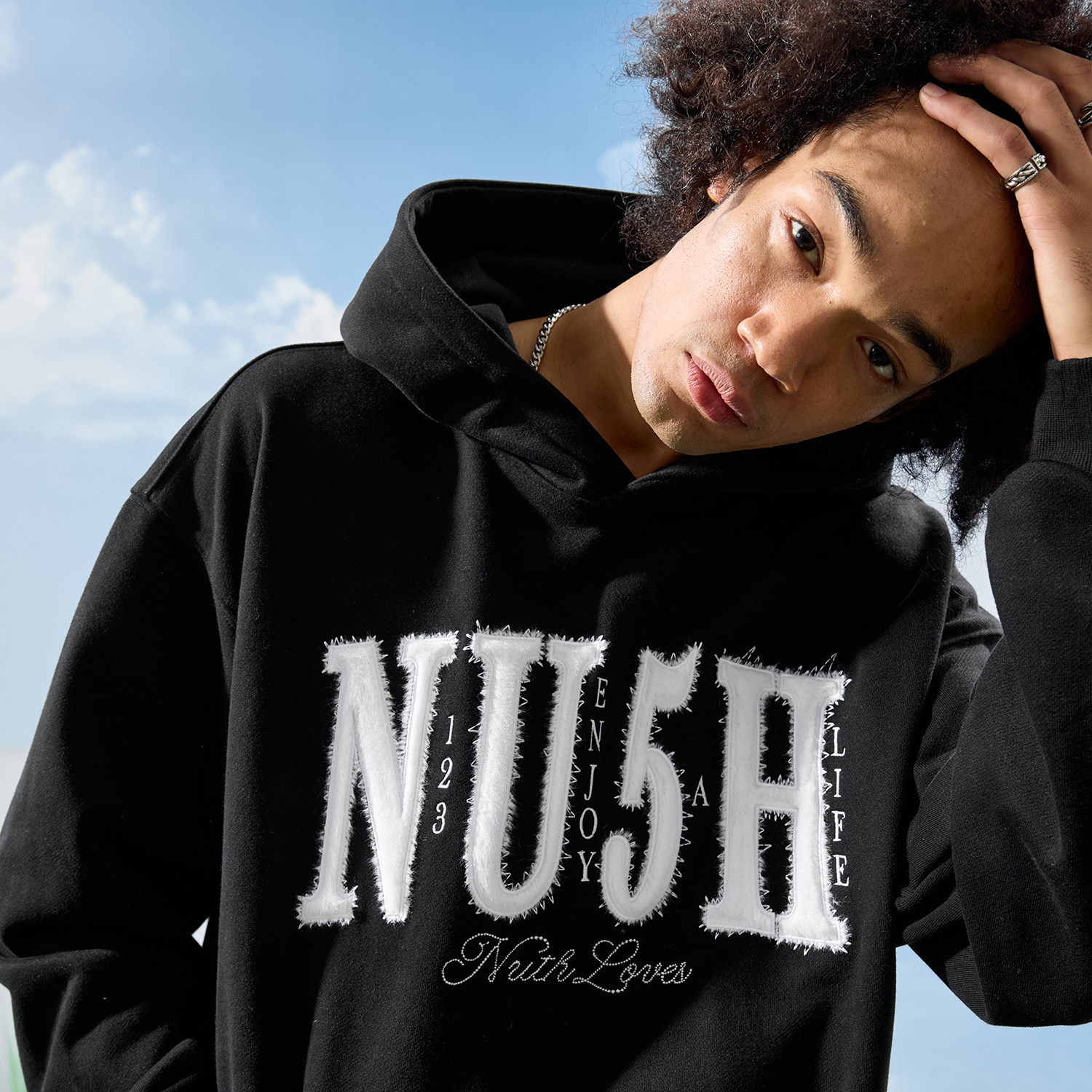 新款 Nuthink重磅刺绣字母连帽卫衣美式 复古潮牌街头男女2025冬季